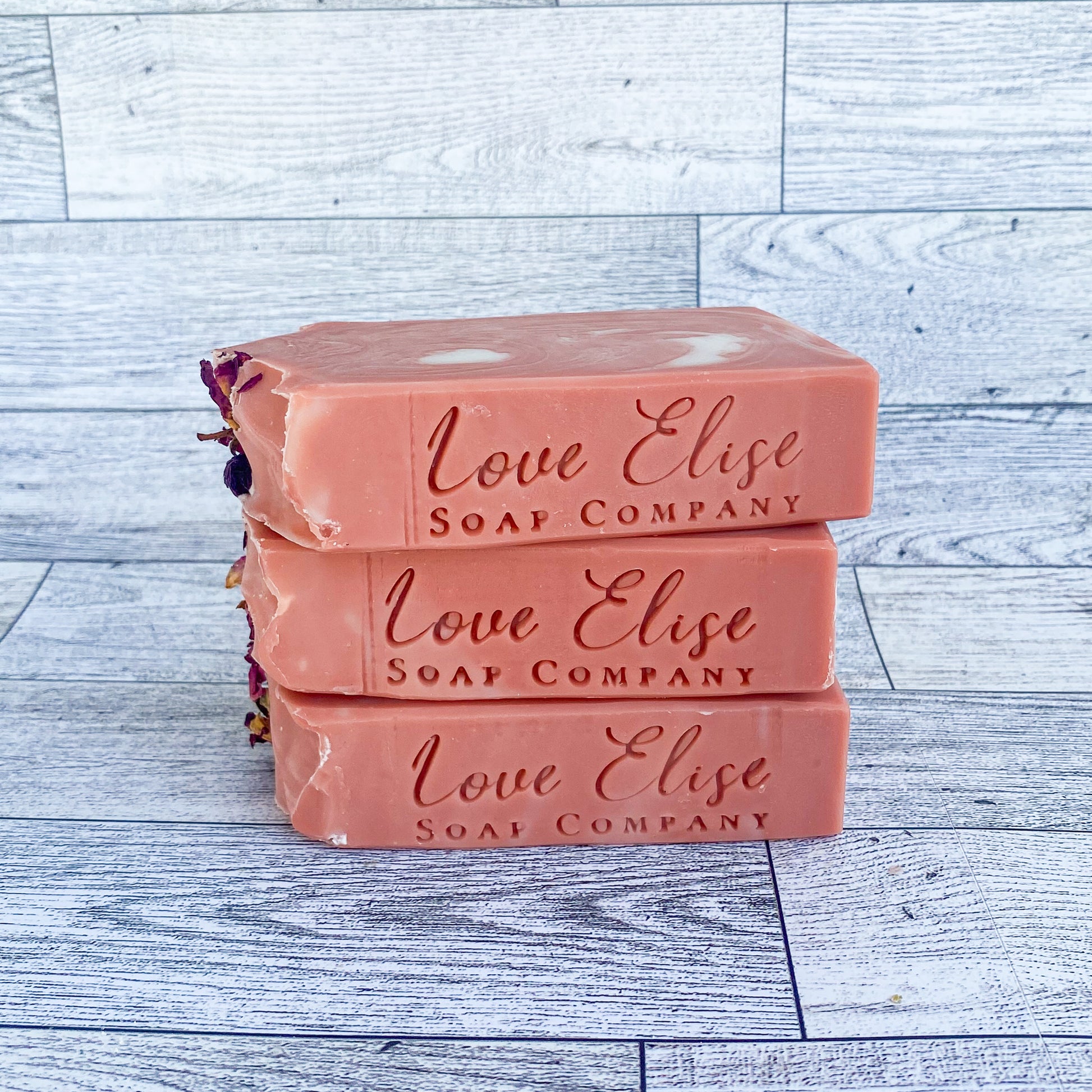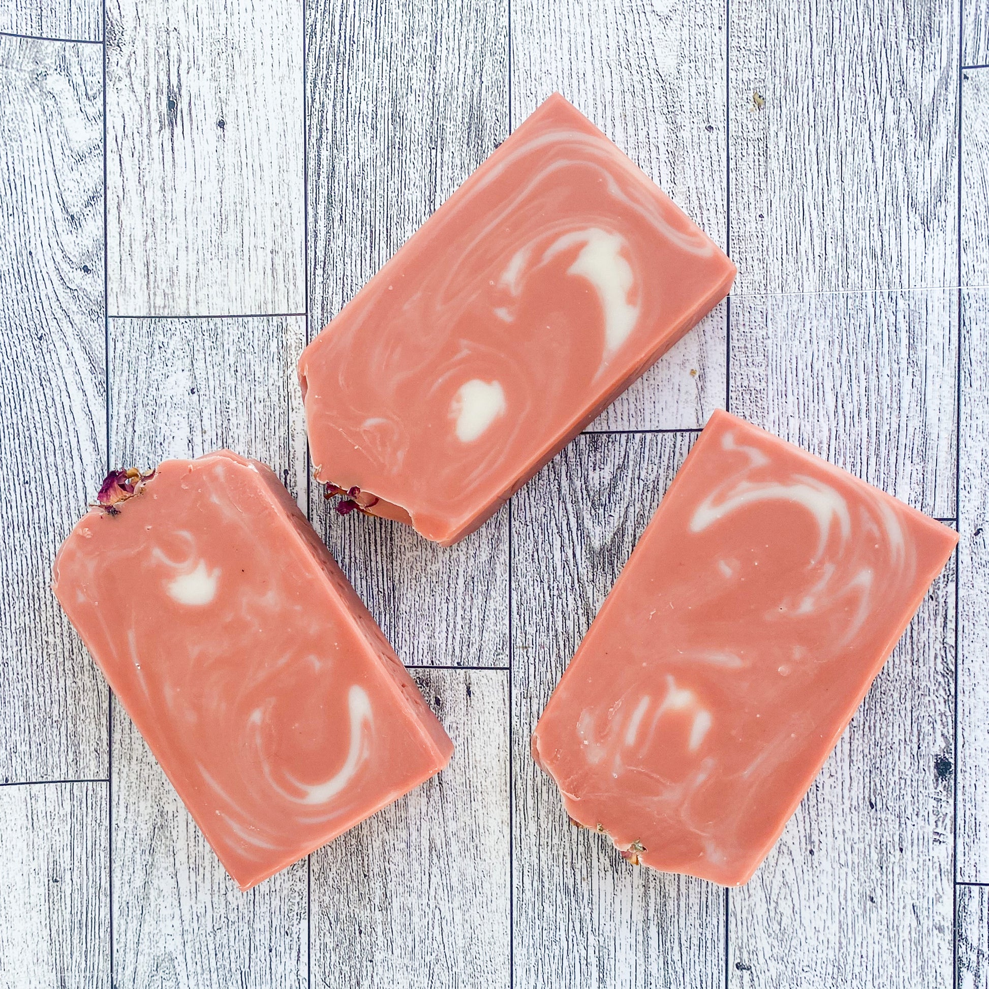 Rose Petal Artisan bar soap has a ethereal floral scent of Patchouli, geranium and lavender. With added luxury of rose clay for a nourishing and soothing feeling. Topped with dried rose buds.