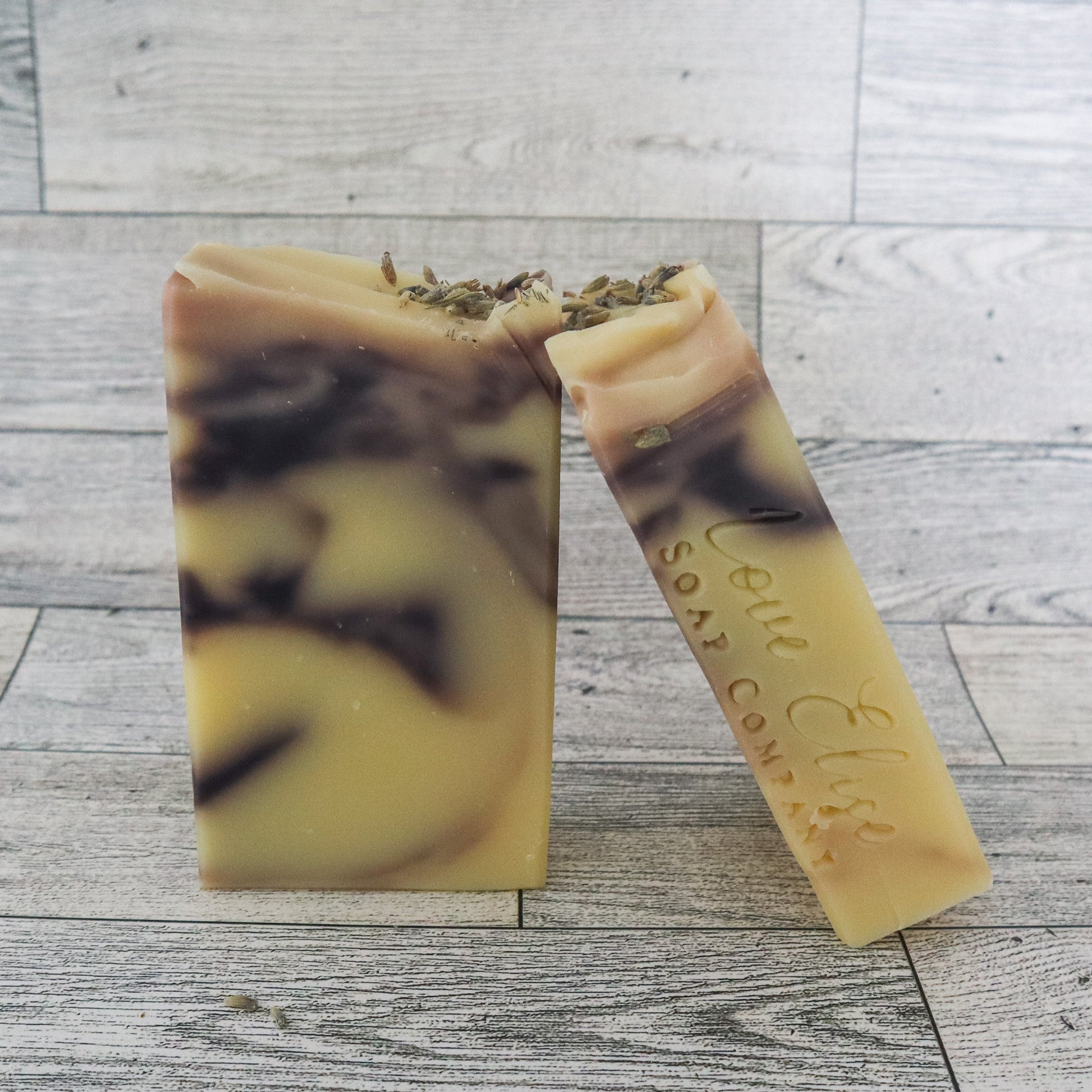 Lavender Fields Artisan soap is all natural scented with essential oils and topped with dried lavender buds. Lavender lifts spirits and helps to relax, nourishes and rejuvenates the skin. Promotes a softer, smoother, more youthful skin.